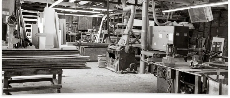 Our Woodshop's machines: Table, Radial-Arm, Miter, and Band Saws, Drill Press, Mortising Press, 24" Planer, Joiner, 37" Wide-Belt Sander, Router, Shaper, Door Hanging Machine, plus a large variety of power and hand tools.